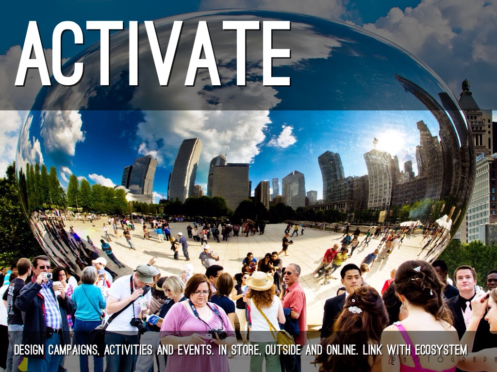 DESIGN CAMPAIGNS, ACTIVITIES AND EVENTS. IN STORE, OUTSIDE AND ONLINE. LINK WITH ECOSYSTEM