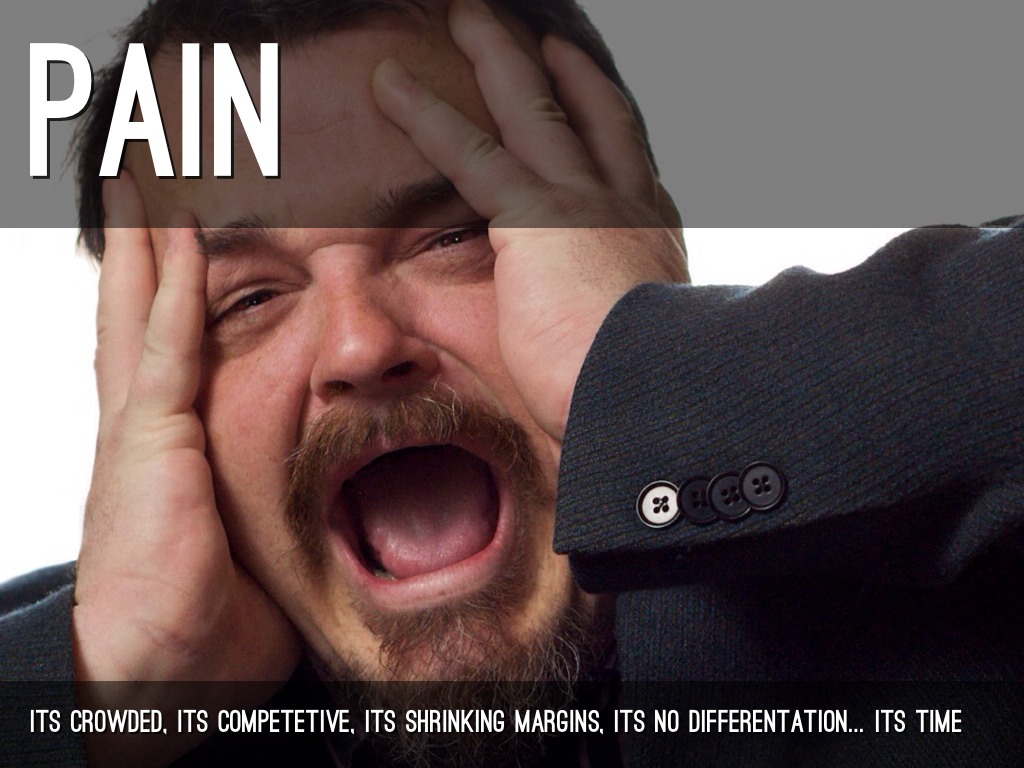 ITS CROWDED, ITS COMPETETIVE, ITS SHRINKING MARGINS, ITS NO DIFFERENTATION... ITS TIME