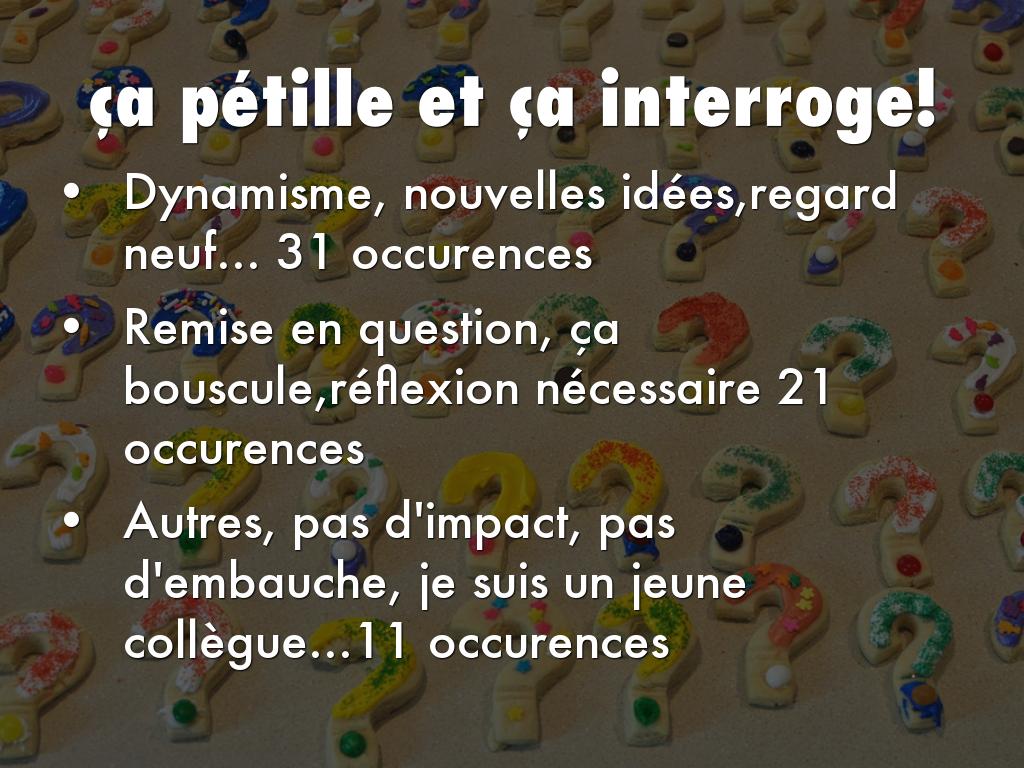 Remise en question, ça bouscule,réflexion nécessaire 21 occurences