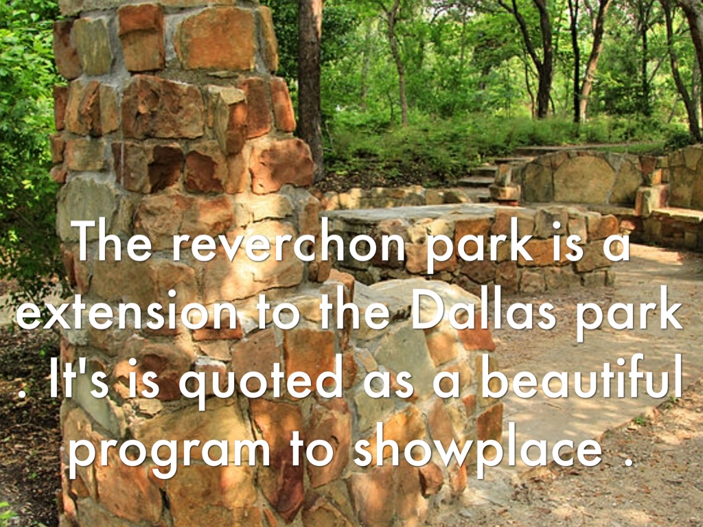The reverchon park is a extension to the Dallas park . It's is quoted as a beautiful program to showplace .