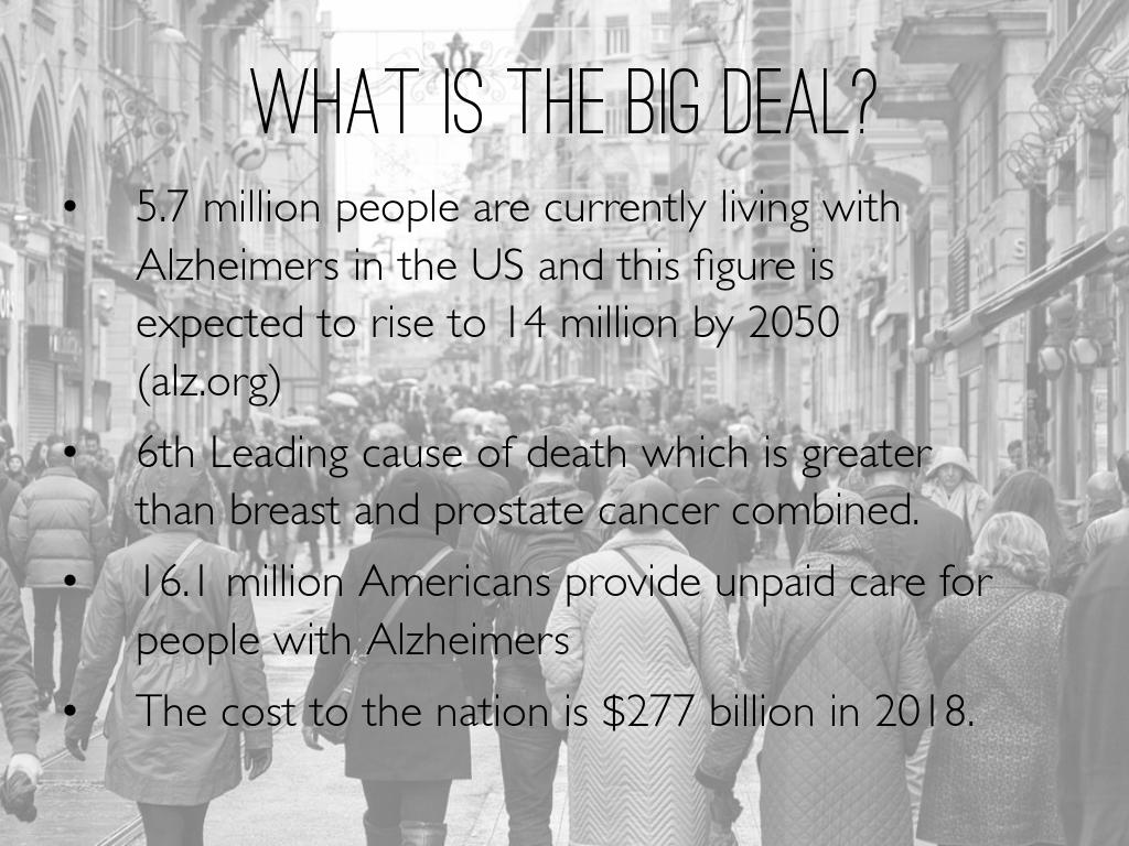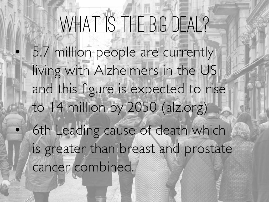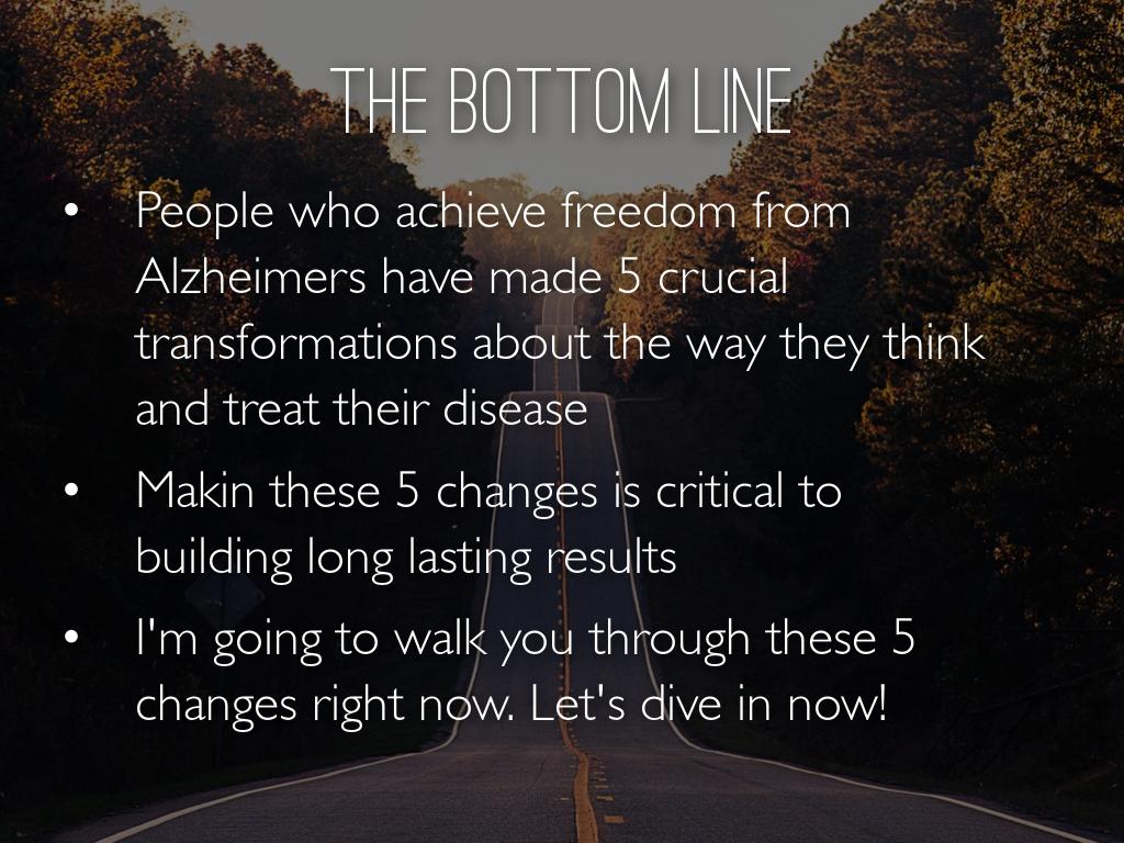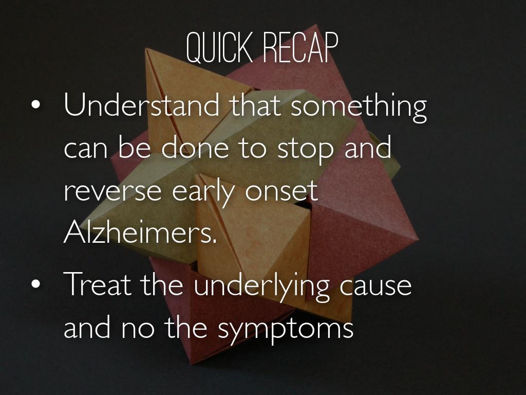 We have been working hard to identify through current research and our clinical research what it takes to beat Alzheimers