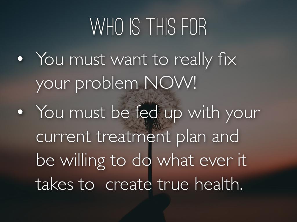 The results of this approach is worsening symptoms, progression of the disease, loss of identity, financial and emotional burden on loved ones and ultimately YOU become a lifelong patient.