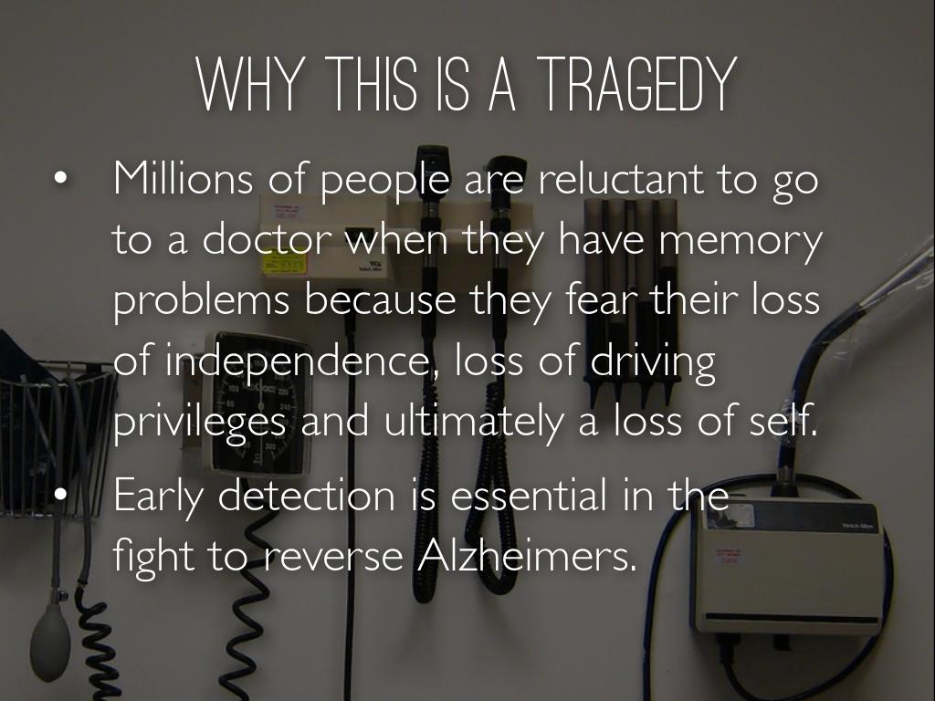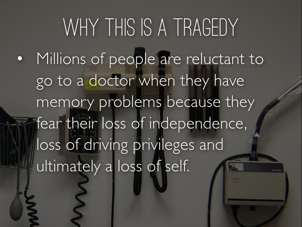 Millions of people are reluctant to go to a doctor when they have memory problems because they fear their loss of independence, loss of driving privileges and ultimately a loss of self.
