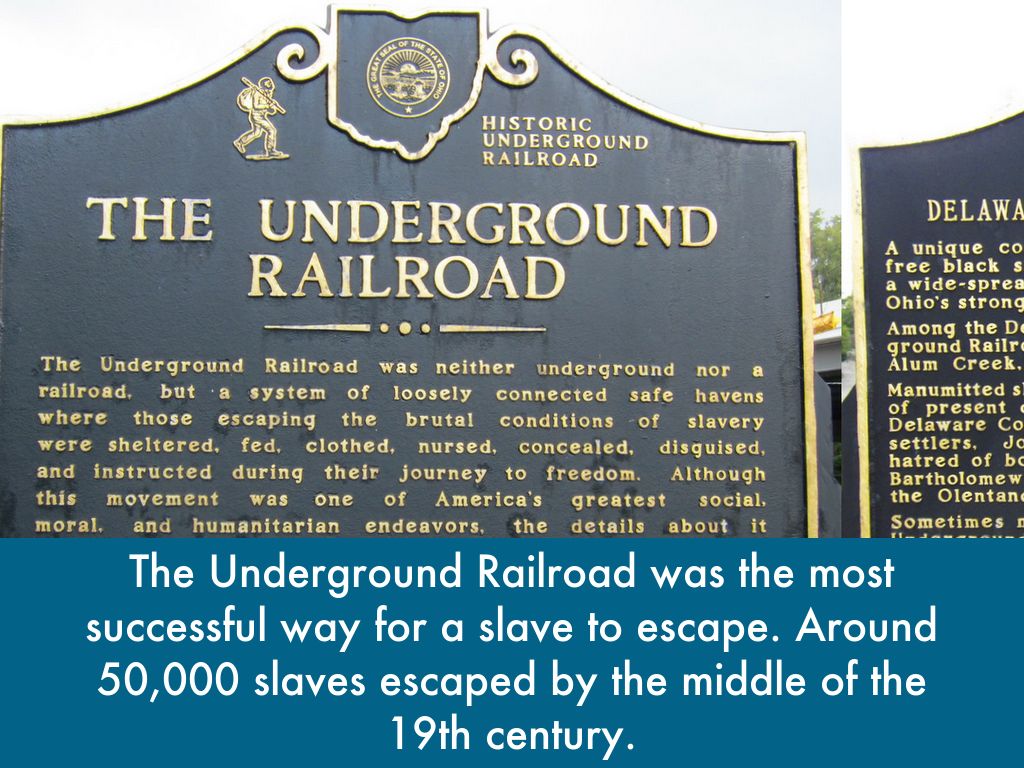 The Underground Railroad was the most successful way for a slave to escape. Around 50,000 slaves escaped by the middle of the 19th century.