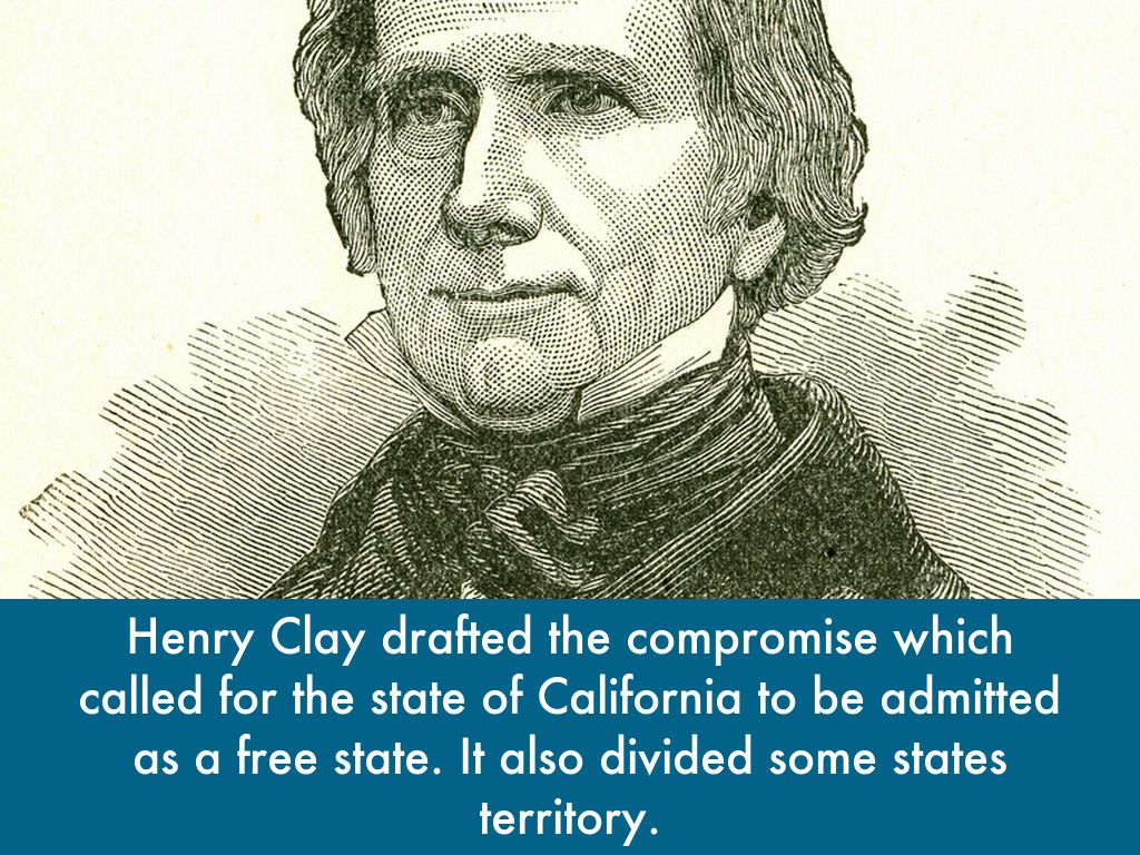 Henry Clay drafted the compromise which called for the state of California to be admitted as a free state. It also divided some states territory.