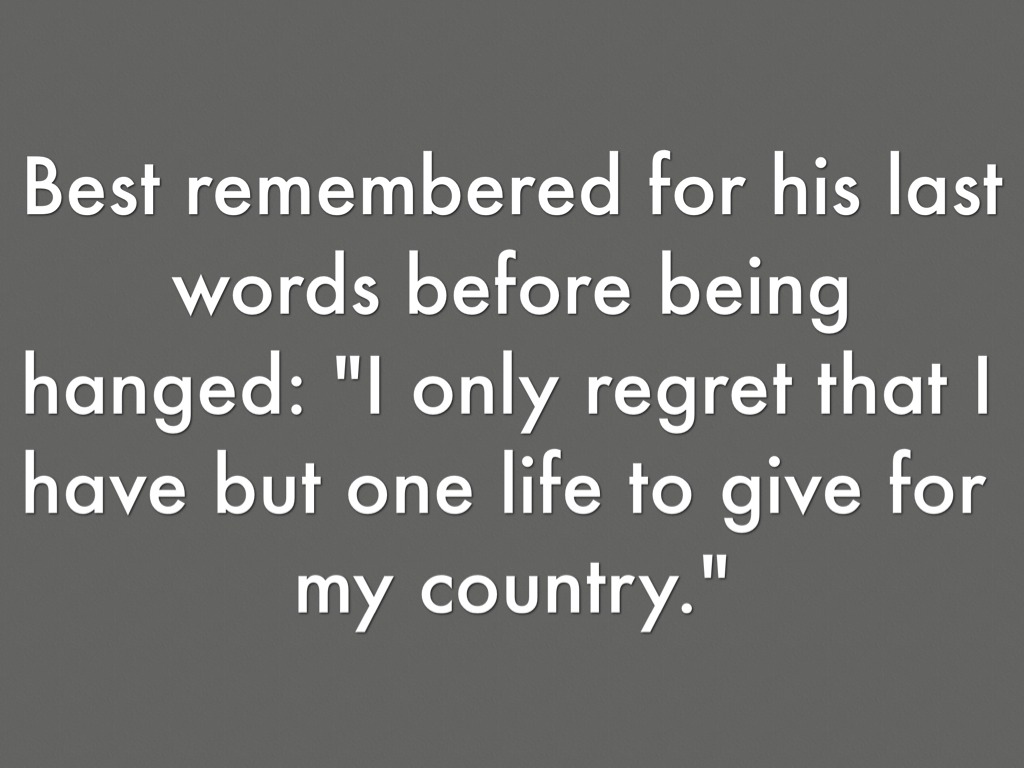 Best remembered for his last words before being hanged: "I only regret that I have but one life to give for my country."