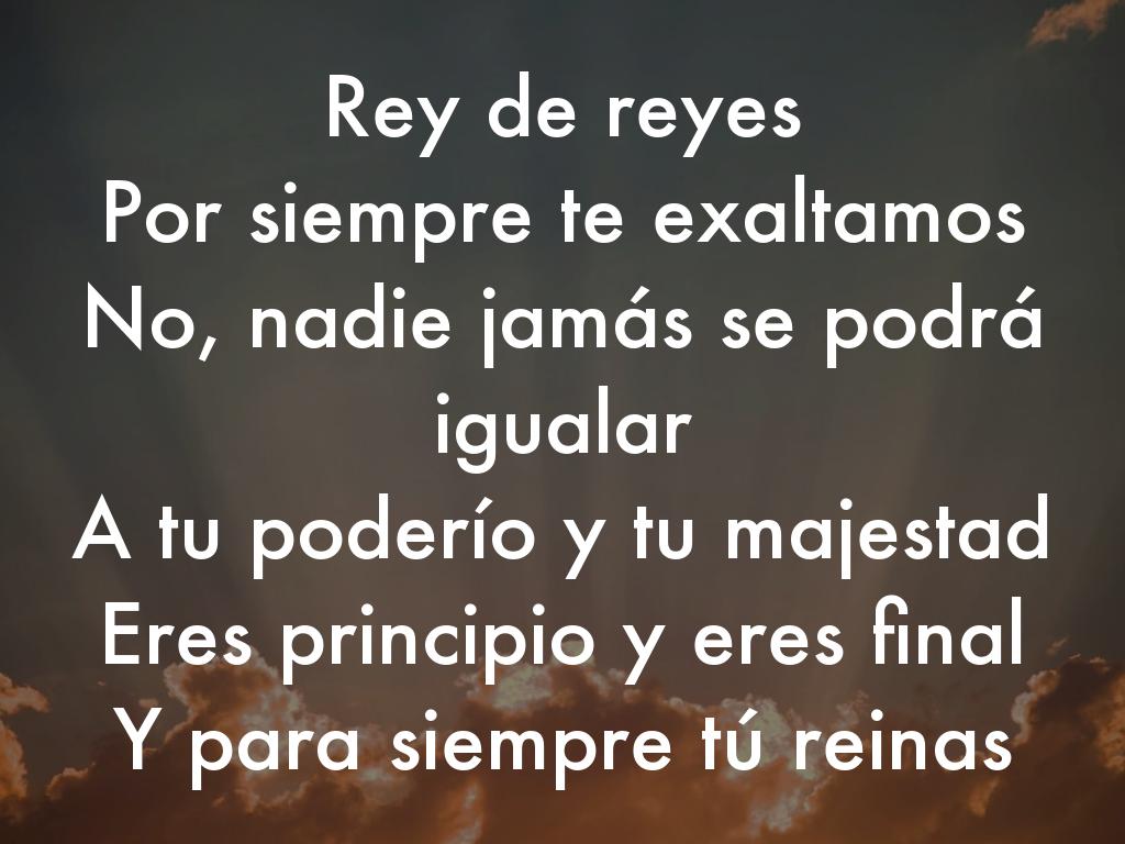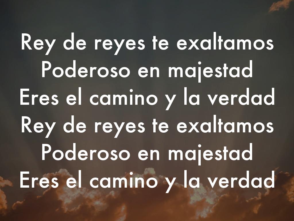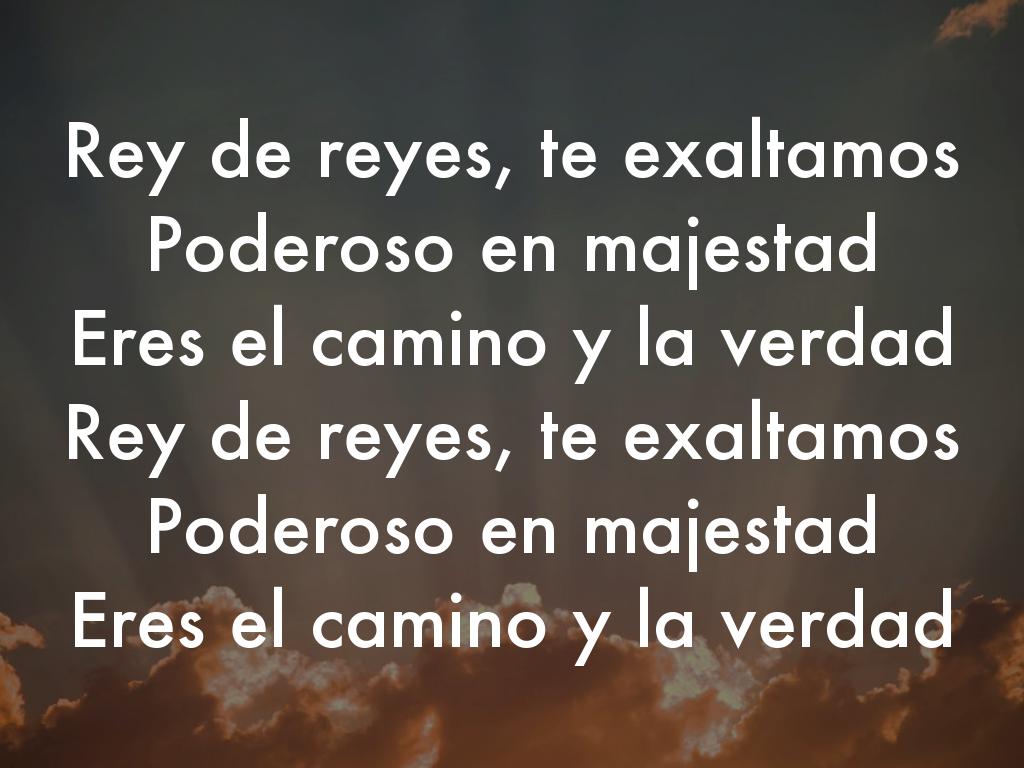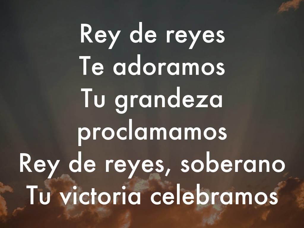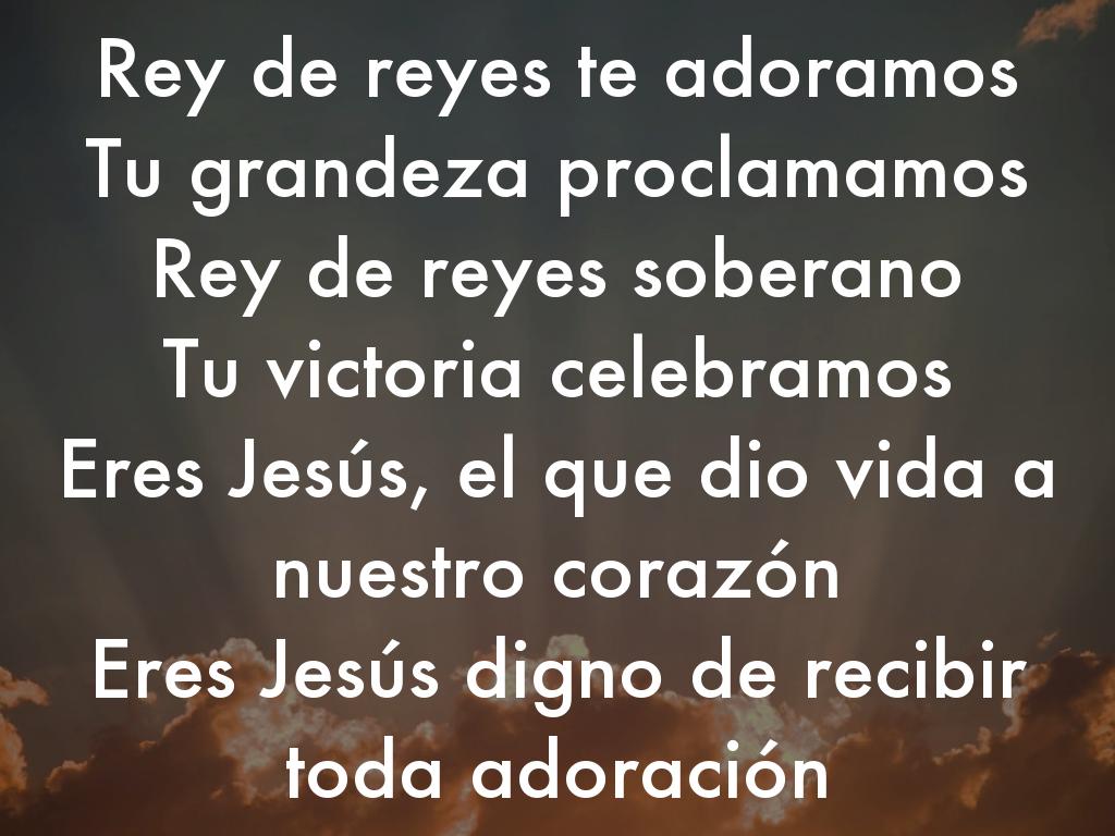 Rey de reyes te adoramos Tu grandeza proclamamos Rey de reyes soberano Tu victoria celebramos Eres Jesús, el que dio vida a nuestro corazón Eres Jesús digno de recibir toda adoración