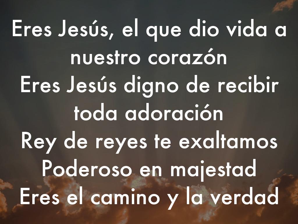 Eres Jesús, el que dio vida a nuestro corazón Eres Jesús digno de recibir toda adoración Rey de reyes te exaltamos Poderoso en majestad Eres el camino y la verdad