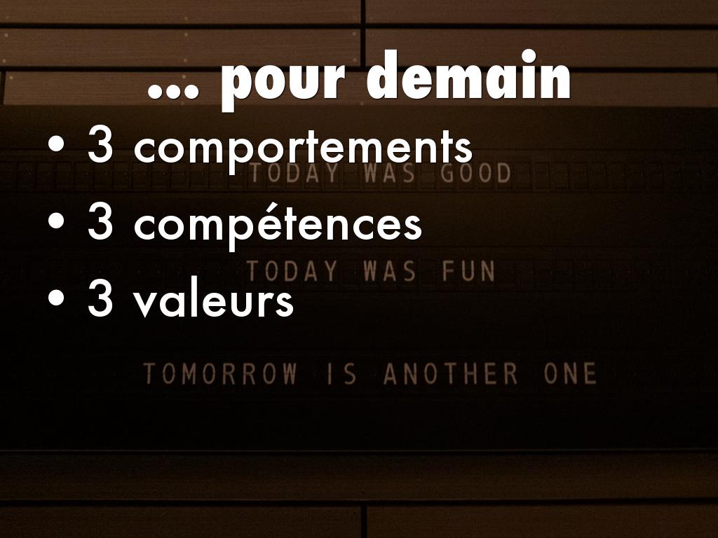 Maintenant, en cohérence avec cet projet d'entreprise et pour relever les défis de demain, identifiez les 3 comportements (ce que je fais, au quotidien), les 3 compétences (mes savoir-faire), les 3 valeurs (mes principes personnels, ce qui me porte, me guide) du manager G'Oc de demain pour répondre aux attentes et aux besoins