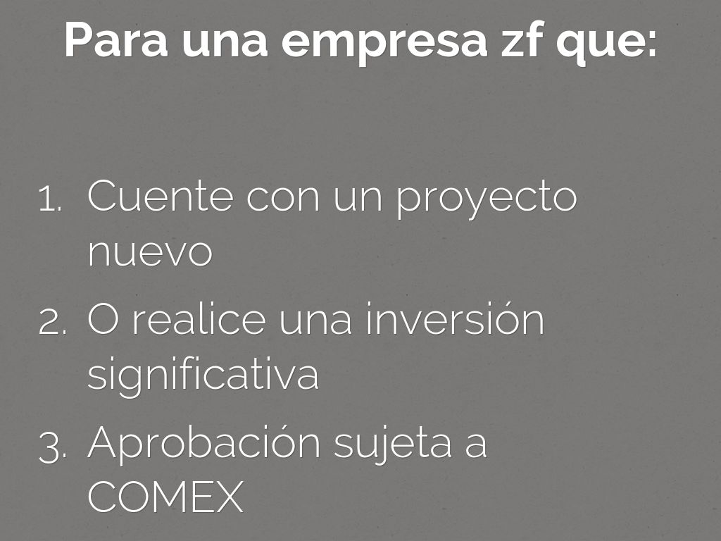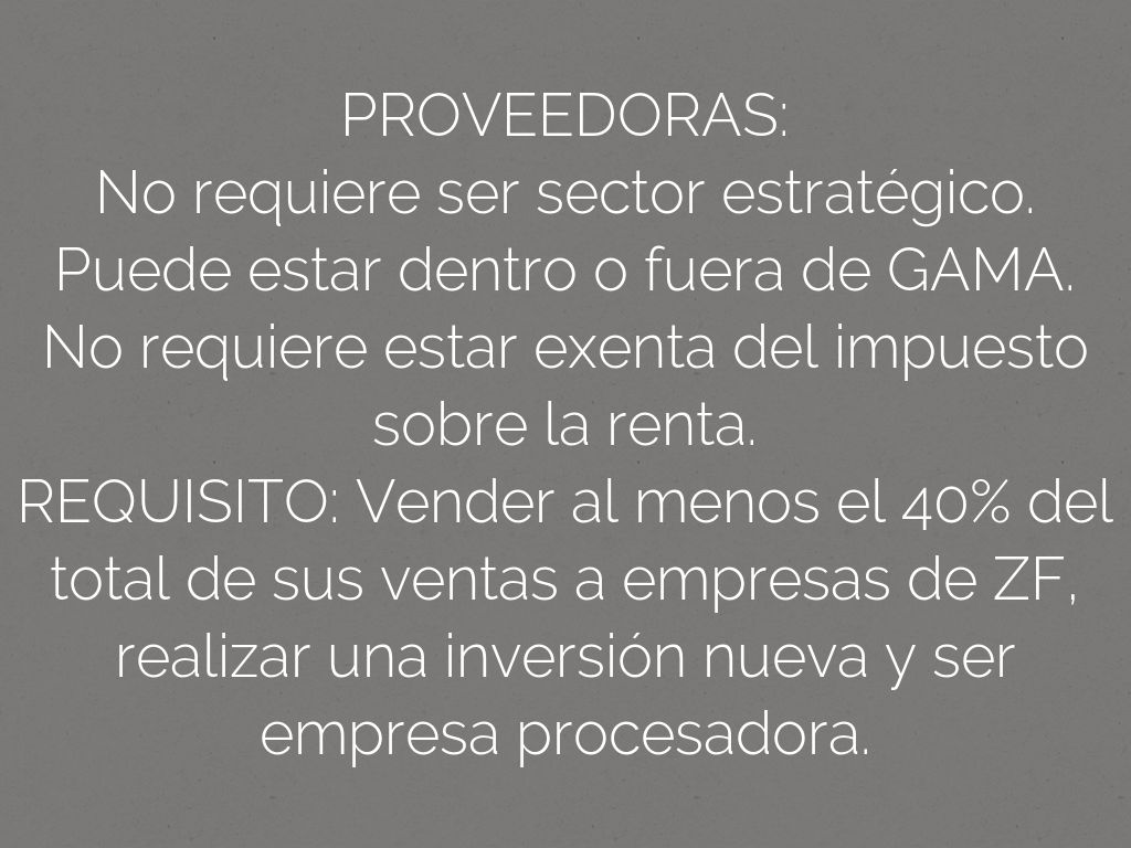 REQUISITO: Vender al menos el 40% del total de sus ventas a empresas de ZF, realizar una inversión nueva y ser empresa procesadora.
