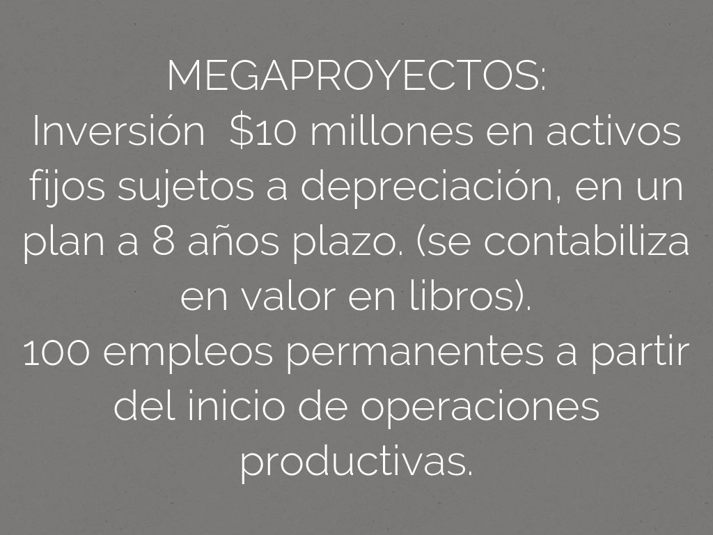 100 empleos permanentes a partir del inicio de operaciones productivas.