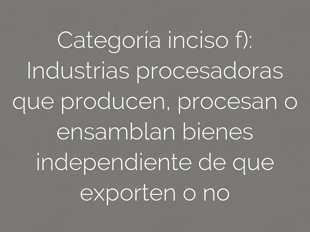 Categoría inciso f): Industrias procesadoras que producen, procesan o ensamblan bienes independiente de que exporten o no