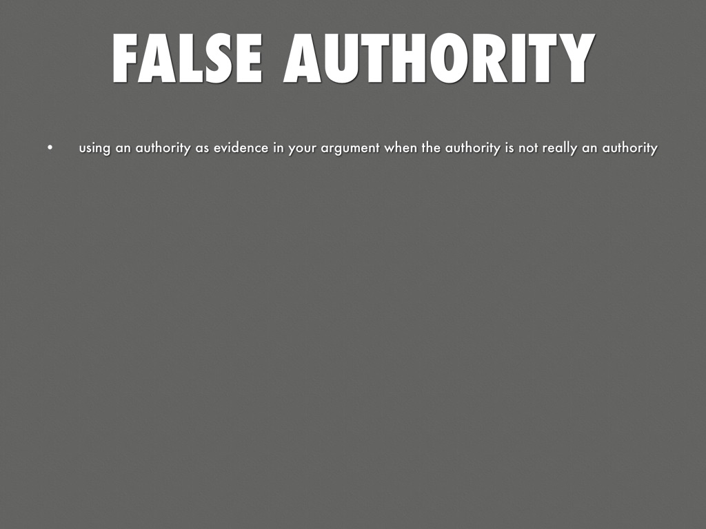 using an authority as evidence in your argument when the authority is not really an authority