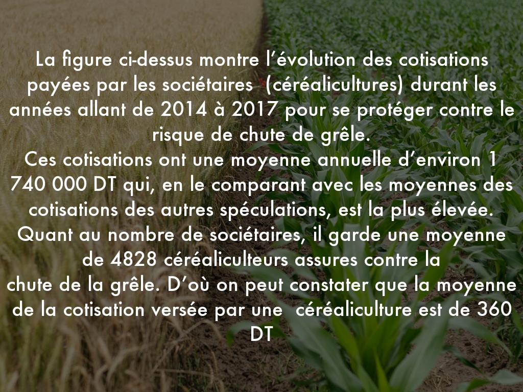 chute de la grêle. D’où on peut constater que la moyenne de la cotisation versée par une céréaliculture est de 360 DT