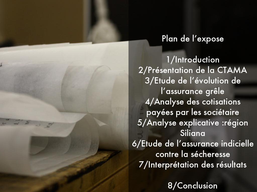 Pour cela, une étude portera sur la région de SILIANA afin de mettre en relief les causes qui expliquent l’adhésion des céréalicultures a une assurance contre la chute de grêle et le profil de ces céréaliculteurs.
