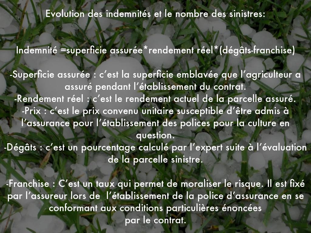 Indemnité =superficie assurée*rendement réel*(dégâts-franchise)
