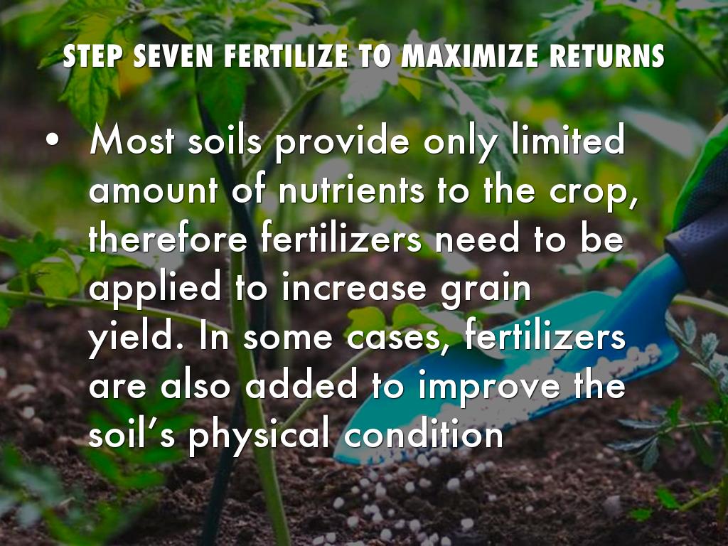 Most soils provide only limited amount of nutrients to the crop, therefore fertilizers need to be applied to increase grain yield. In some cases, fertilizers are also added to improve the soil’s physical condition