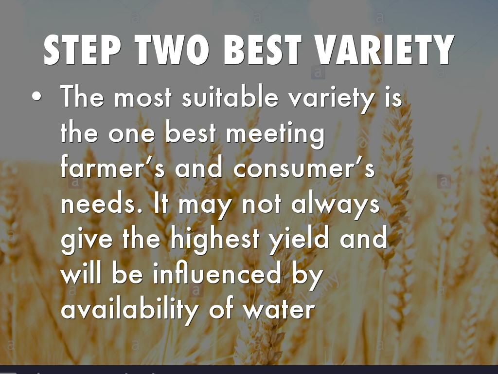 The most suitable variety is the one best meeting farmer’s and consumer’s needs. It may not always give the highest yield and will be influenced by availability of water