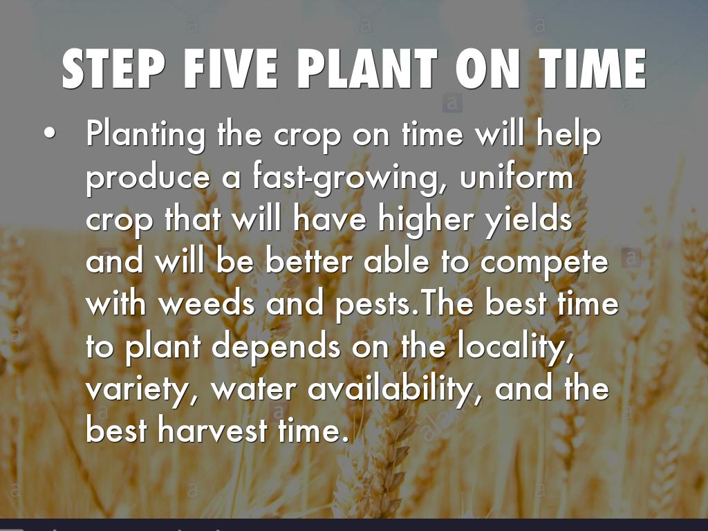 Planting the crop on time will help produce a fast-growing, uniform crop that will have higher yields and will be better able to compete with weeds and pests.The best time to plant depends on the locality, variety, water availability, and the best harvest time.