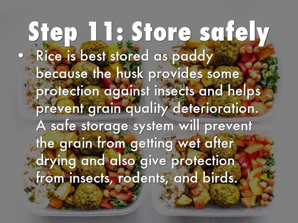 • Storing the rice in a cool, dry, and clean area — preferably in sealed containers for seed.