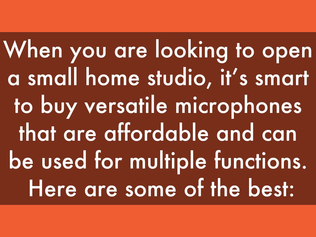 When you are looking to open a small home studio, it’s smart to buy versatile microphones that are affordable and can be used for multiple functions. Here are some of the best: