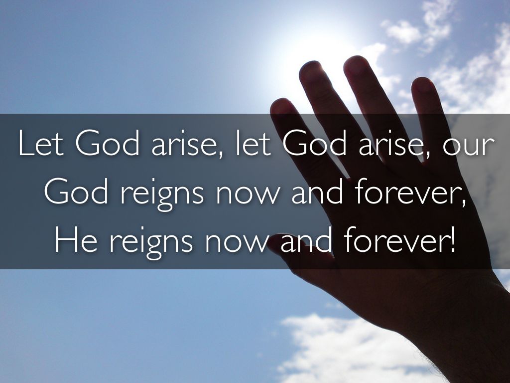 Let God arise, let God arise, our God reigns now and forever,