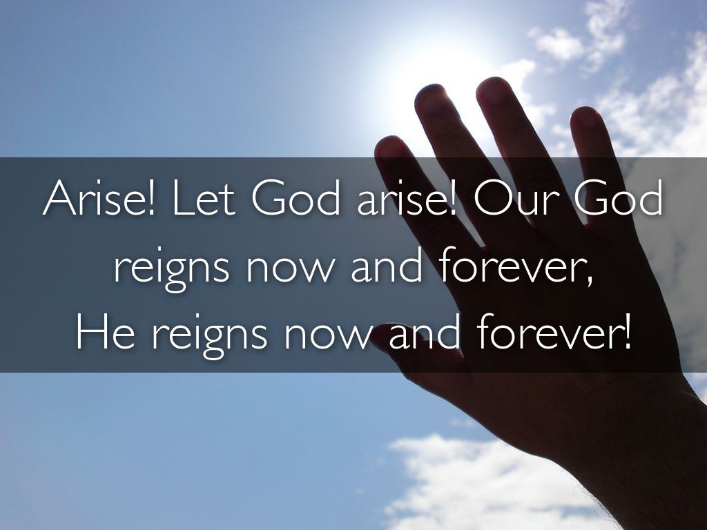 Arise! Let God arise! Our God reigns now and forever,