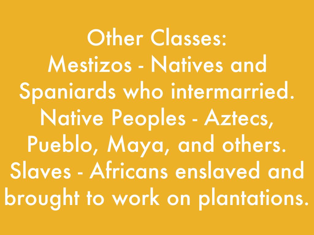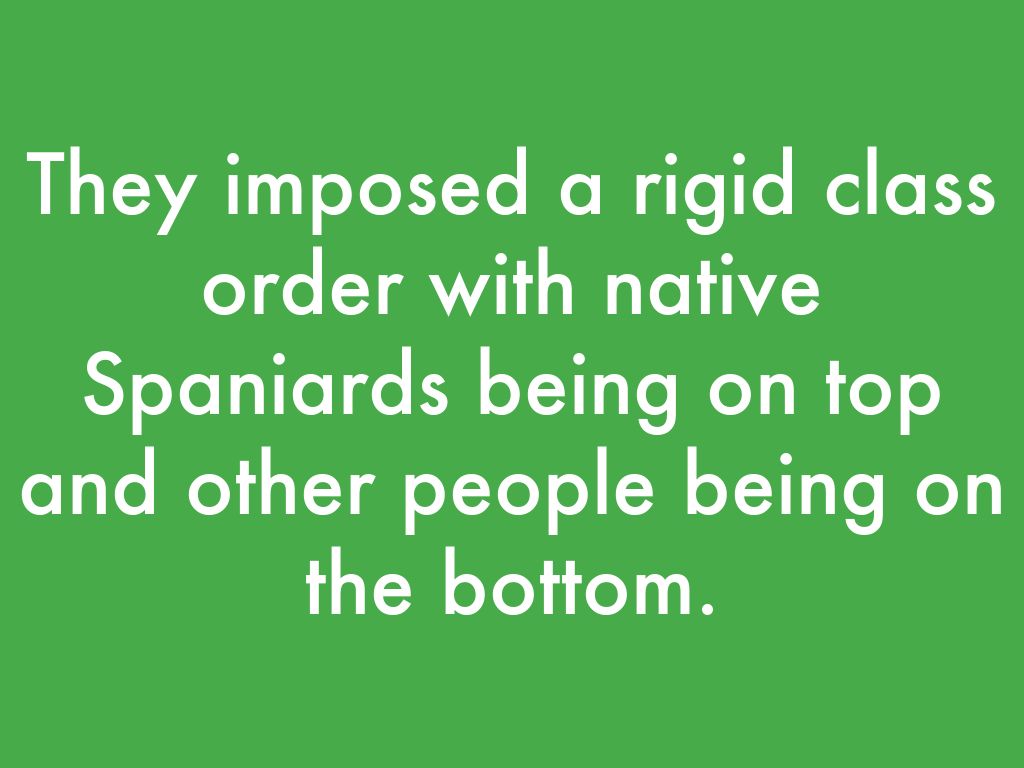They imposed a rigid class order with native Spaniards being on top and other people being on the bottom.