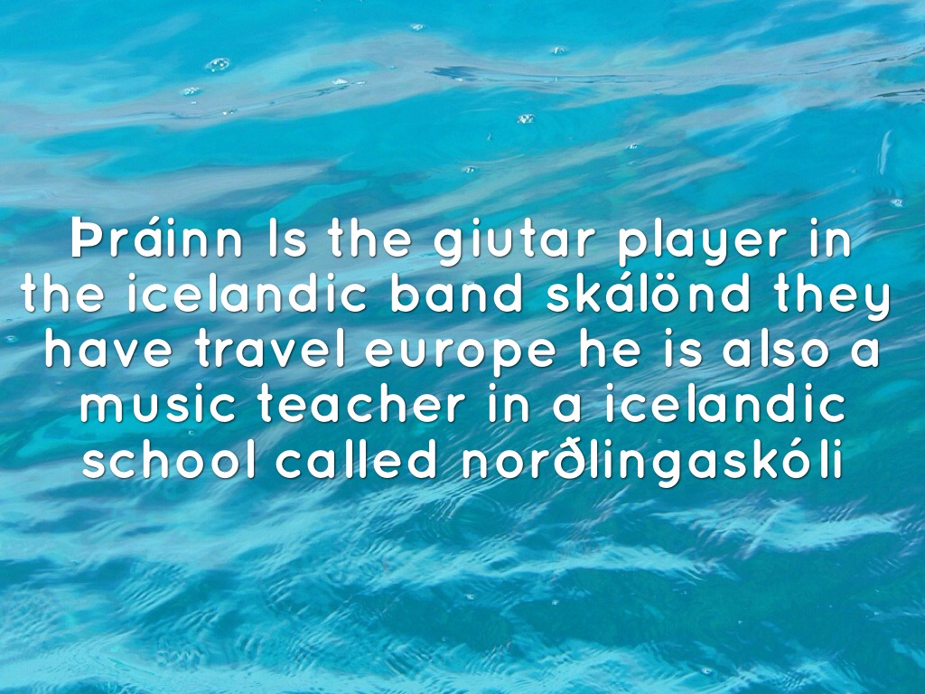 Þráinn Is the giutar player in the icelandic band skálönd they have travel europe he is also a music teacher in a icelandic school called norðlingaskóli