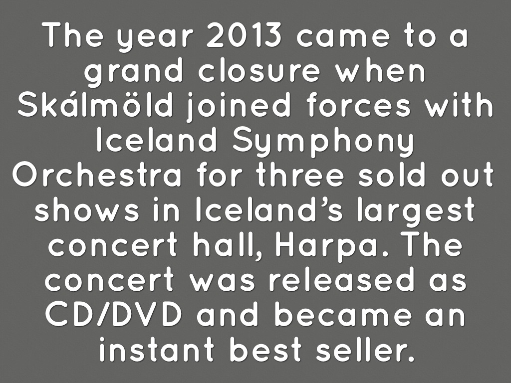 The year 2013 came to a grand closure when Skálmöld joined forces with Iceland Symphony Orchestra for three sold out shows in Iceland’s largest concert hall, Harpa. The concert was released as CD/DVD and became an instant best seller.