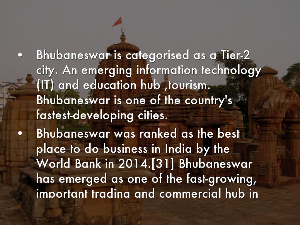 Bhubaneswar is categorised as a Tier-2 city. An emerging information technology (IT) and education hub ,tourism. Bhubaneswar is one of the country's fastest-developing cities.