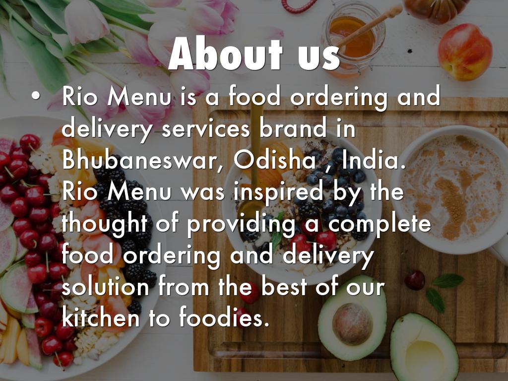 Rio Menu is a food ordering and delivery services brand in Bhubaneswar, Odisha , India. Rio Menu was inspired by the thought of providing a complete food ordering and delivery solution from the best of our kitchen to foodies.