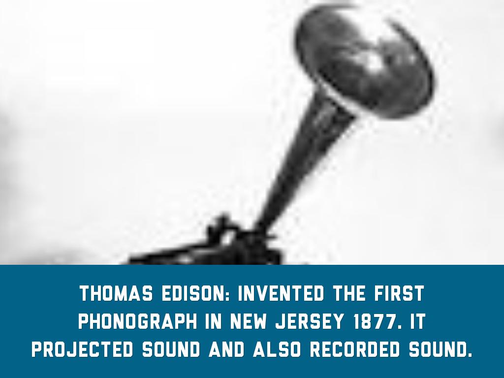 Thomas Edison: invented the first phonograph in new jersey 1877. It projected sound and also recorded sound.