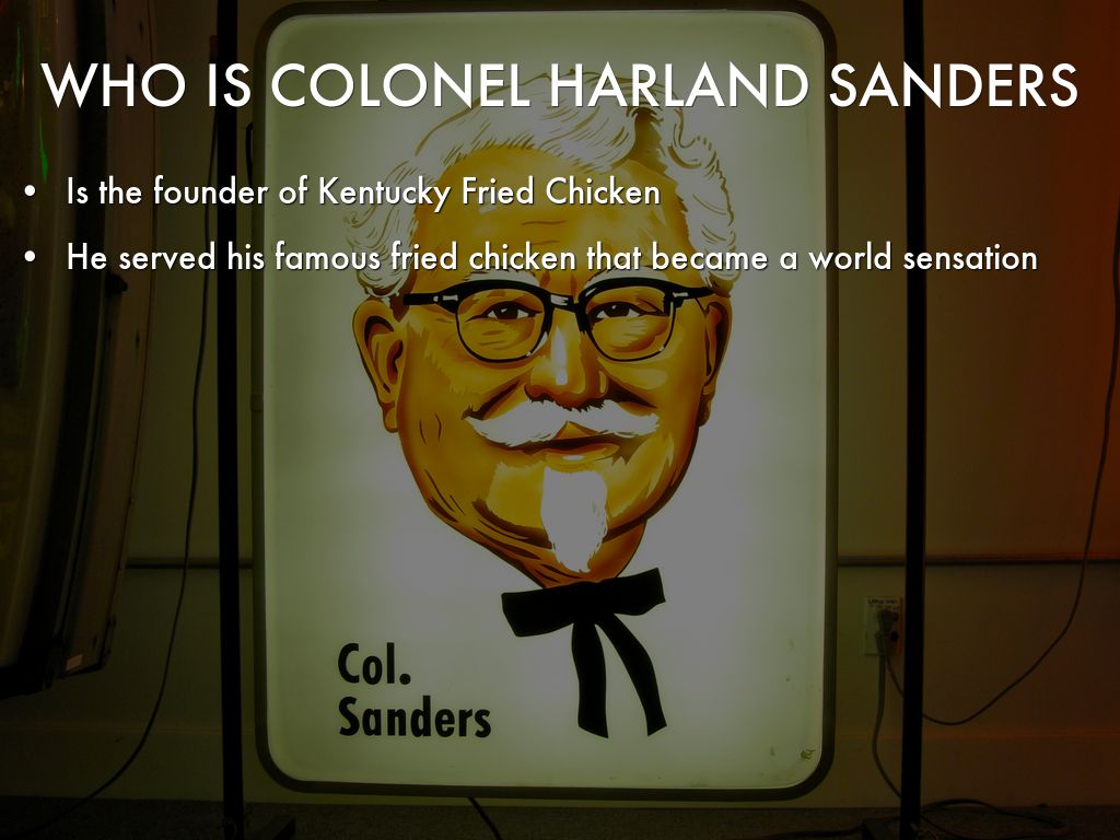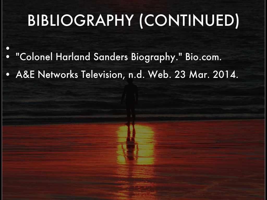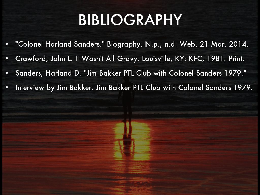 "Colonel Harland Sanders." Biography. N.p., n.d. Web. 21 Mar. 2014.