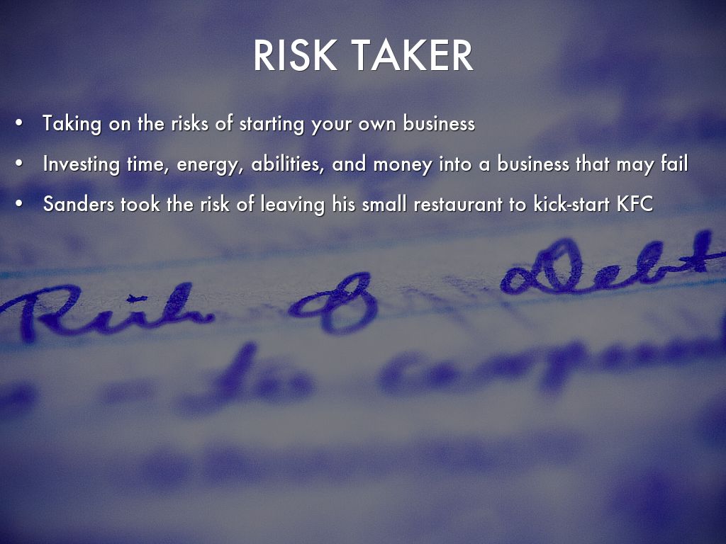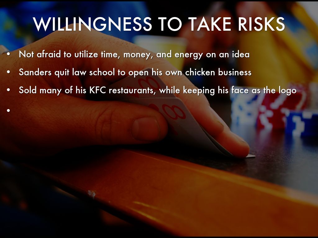 Sanders took the risk of leaving his small restaurant to kick-start KFC