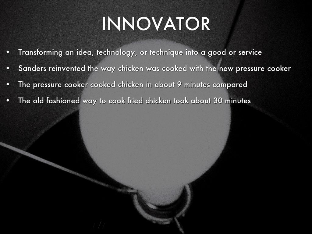 Sanders reinvented the way chicken was cooked with the new pressure cooker