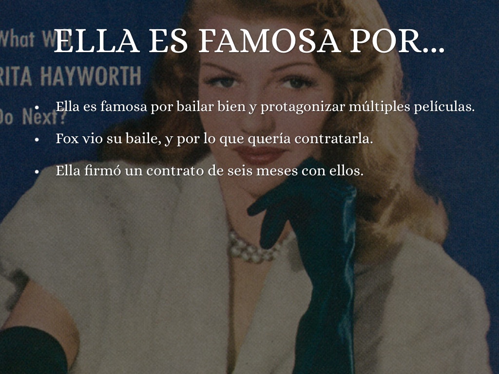 • Rita Hayworth fue una bailarina y actriz de cine.