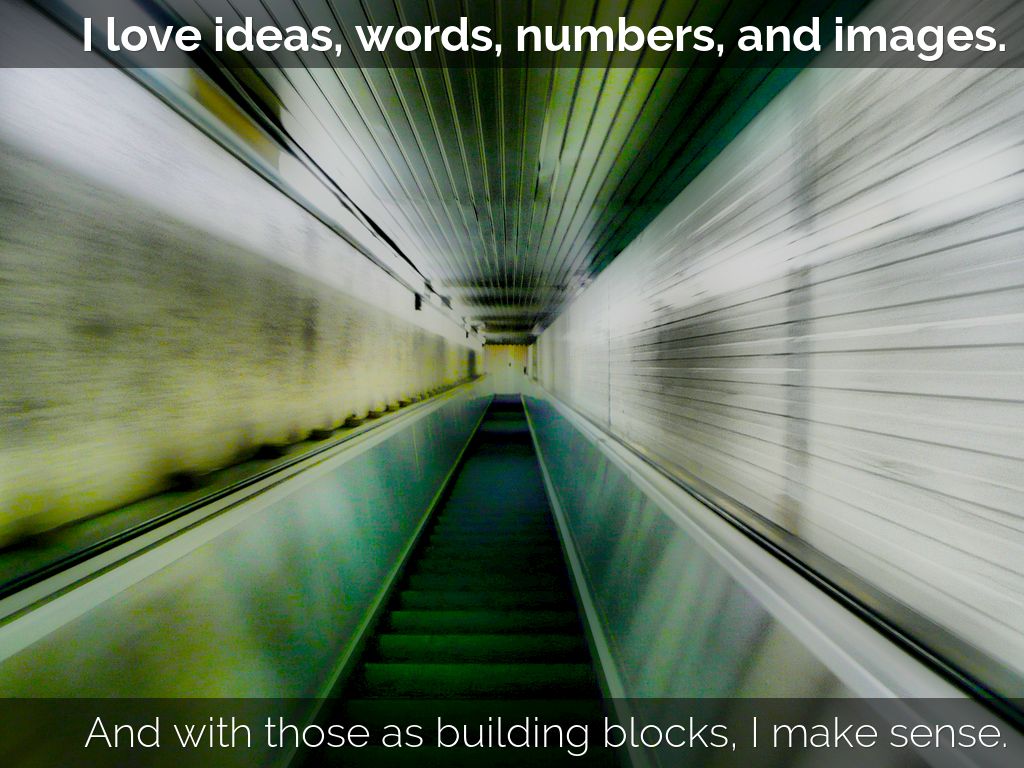 This Haiku Deck presentation template for a personal profile was created using the Volterra theme, image filters on.