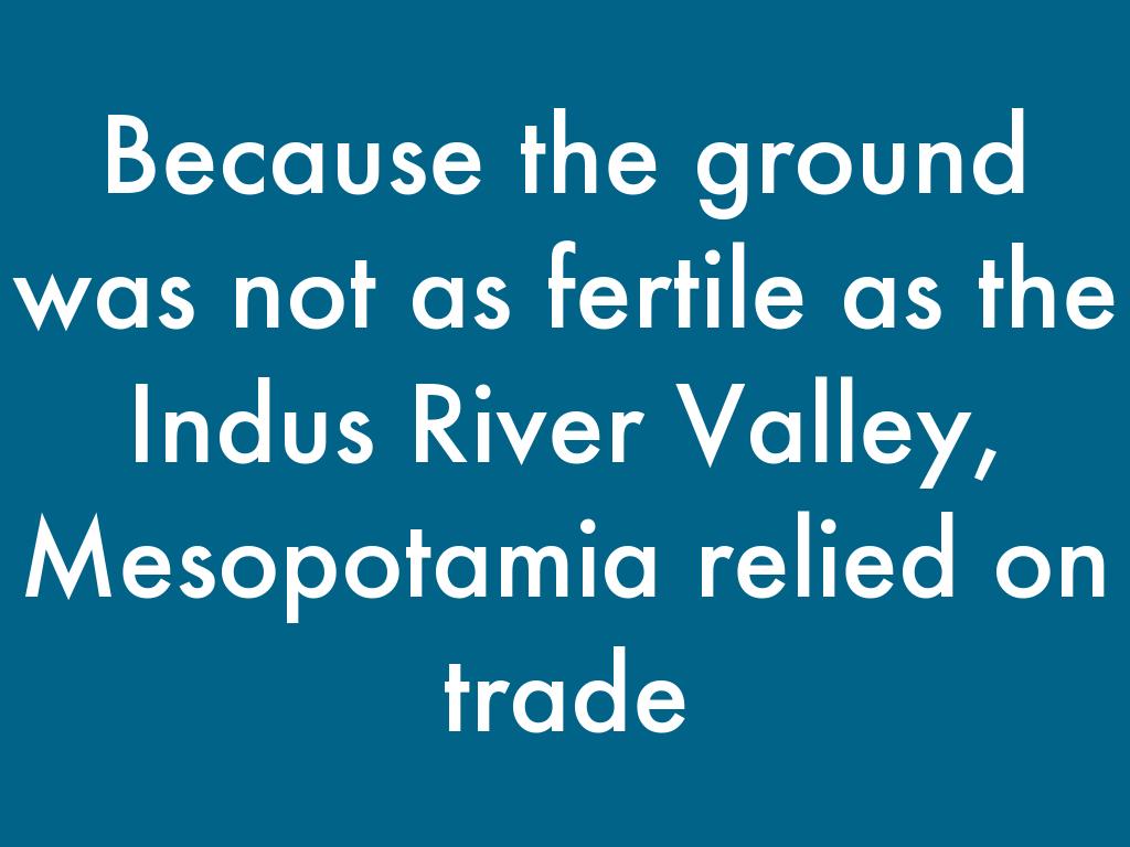 Because the ground was not as fertile as the Indus River Valley, Mesopotamia relied on trade