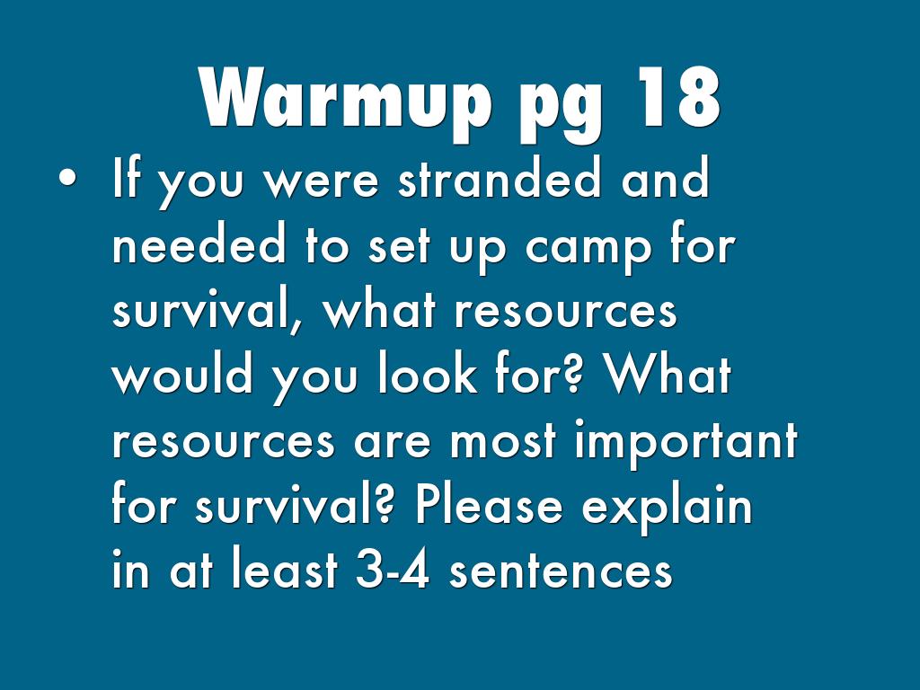 - If you were stranded and needed to set up camp for survival, what resources would you look for? What resources are most important for survival? Please explain in at least 3-4 sentences