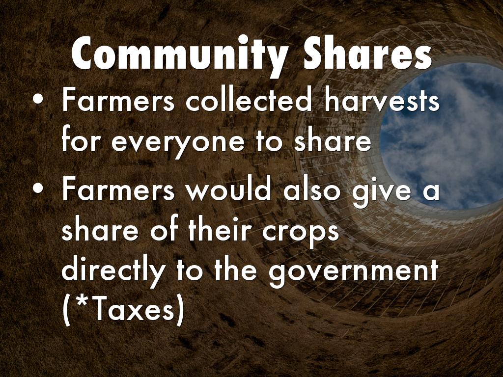 - Farmers would also give a share of their crops directly to the government (*Taxes)