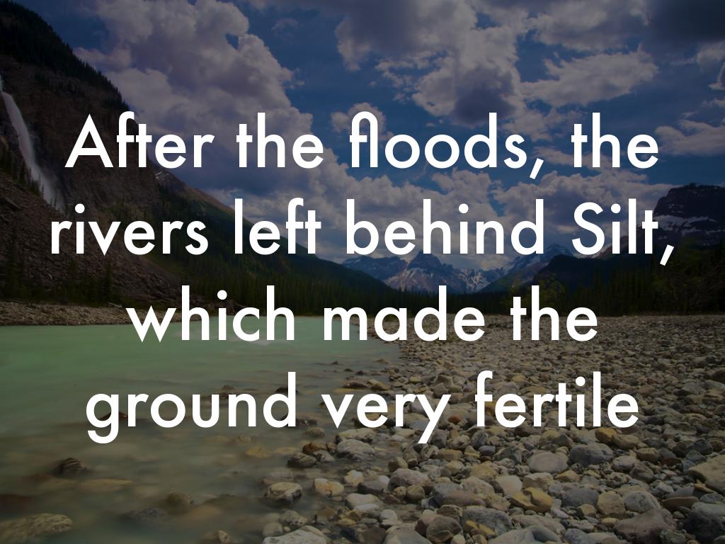 After the floods, the rivers left behind Silt, which made the ground very fertile