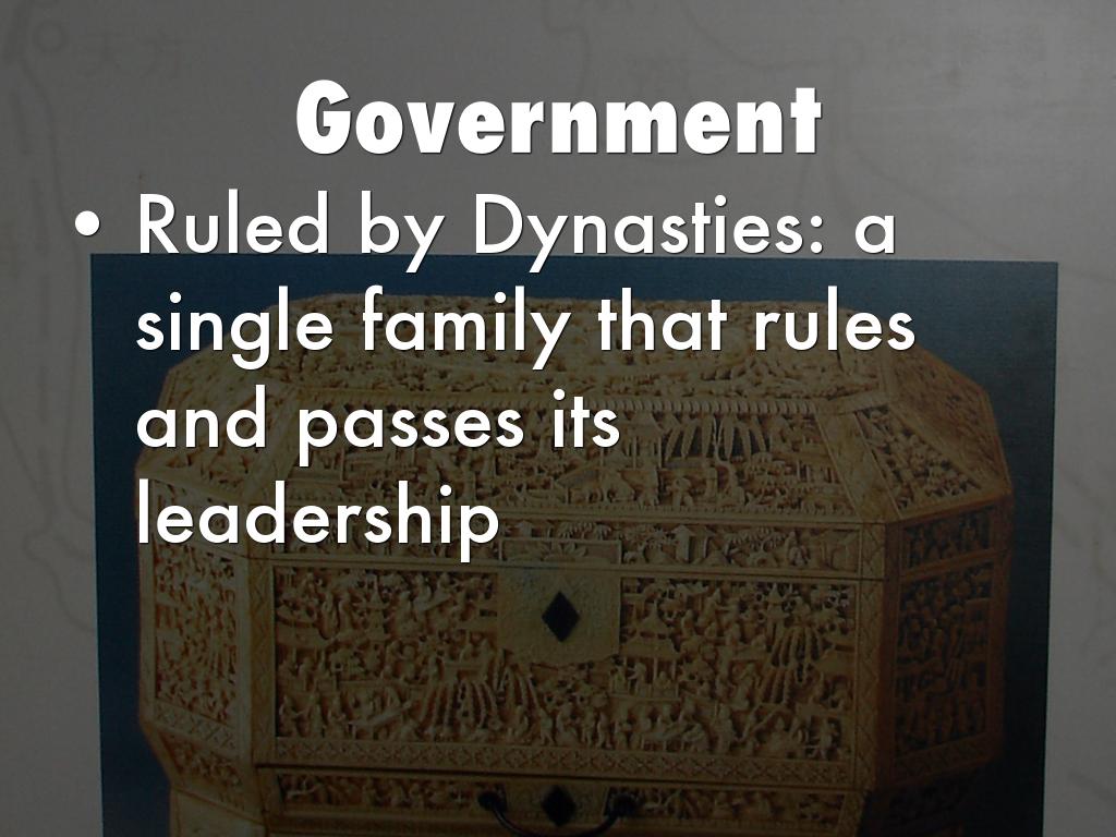 - Ruled by Dynasties: a single family that rules and passes its leadership