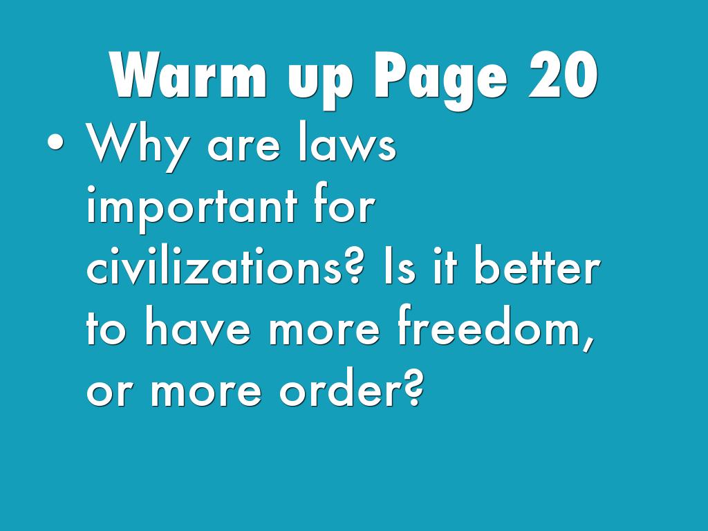 - Why are laws important for civilizations? Is it better to have more freedom, or more order?