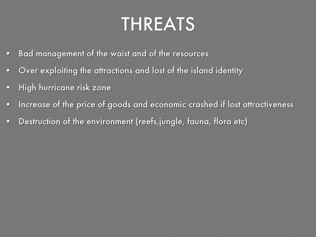 Destruction of the environment (reefs,jungle, fauna, flora etc)