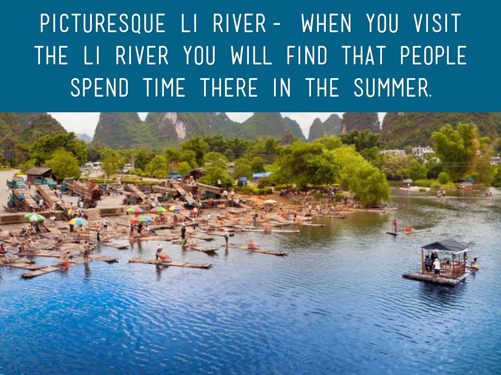 Picturesque Li River- when you visit the Li River you will find that people spend time there in the summer.