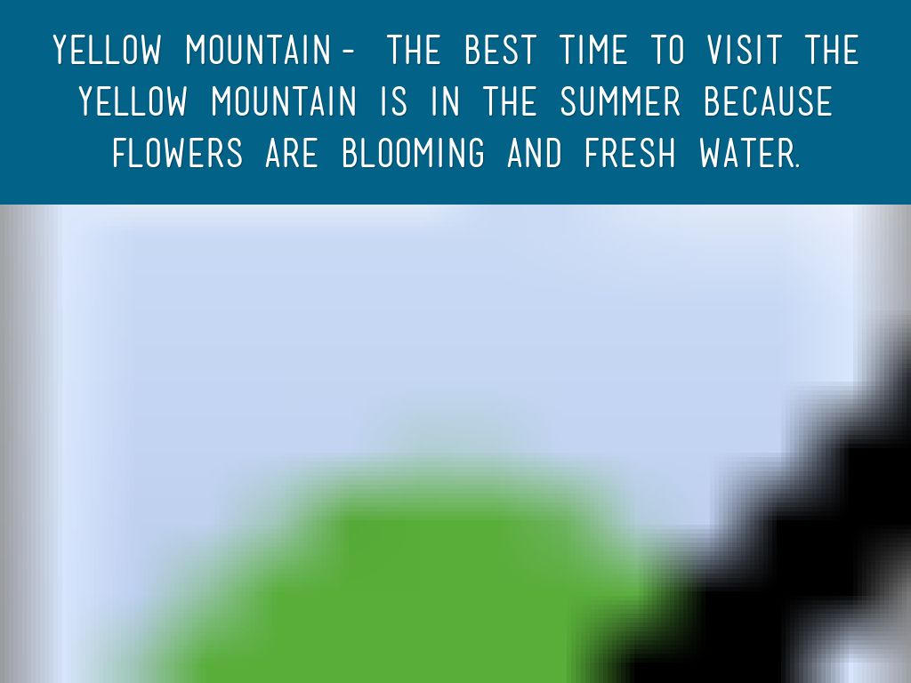 Yellow Mountain- The best time to visit the Yellow Mountain is in the summer because flowers are blooming and fresh water.