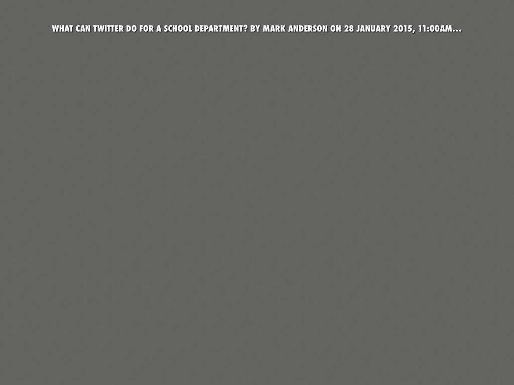 WHAT CAN TWITTER DO FOR A SCHOOL DEPARTMENT? BY MARK ANDERSON ON 28 JANUARY 2015, 11:00AM | SOCIAL MEDIA