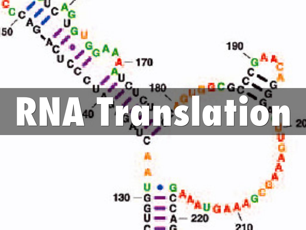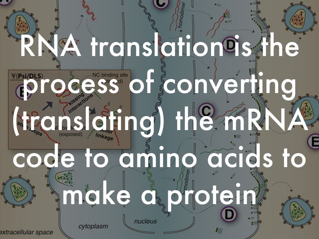 RNA translation is the process of converting (translating) the mRNA code to amino acids to make a protein