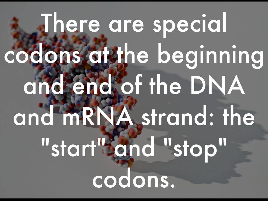 There are special codons at the beginning and end of the DNA and mRNA strand: the "start" and "stop" codons.